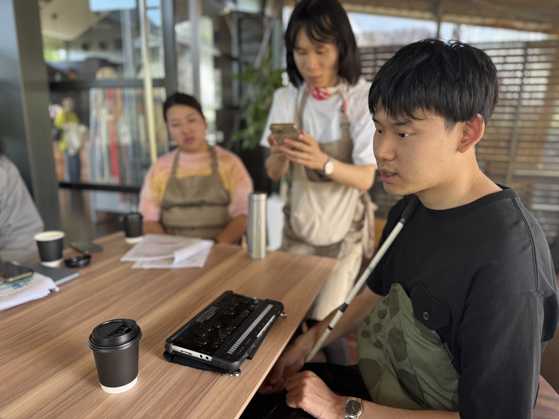 モニターとして群馬から参加してくださった櫻井さん親子。息子さんの貴磨さんは弱視で、重複障害がある。