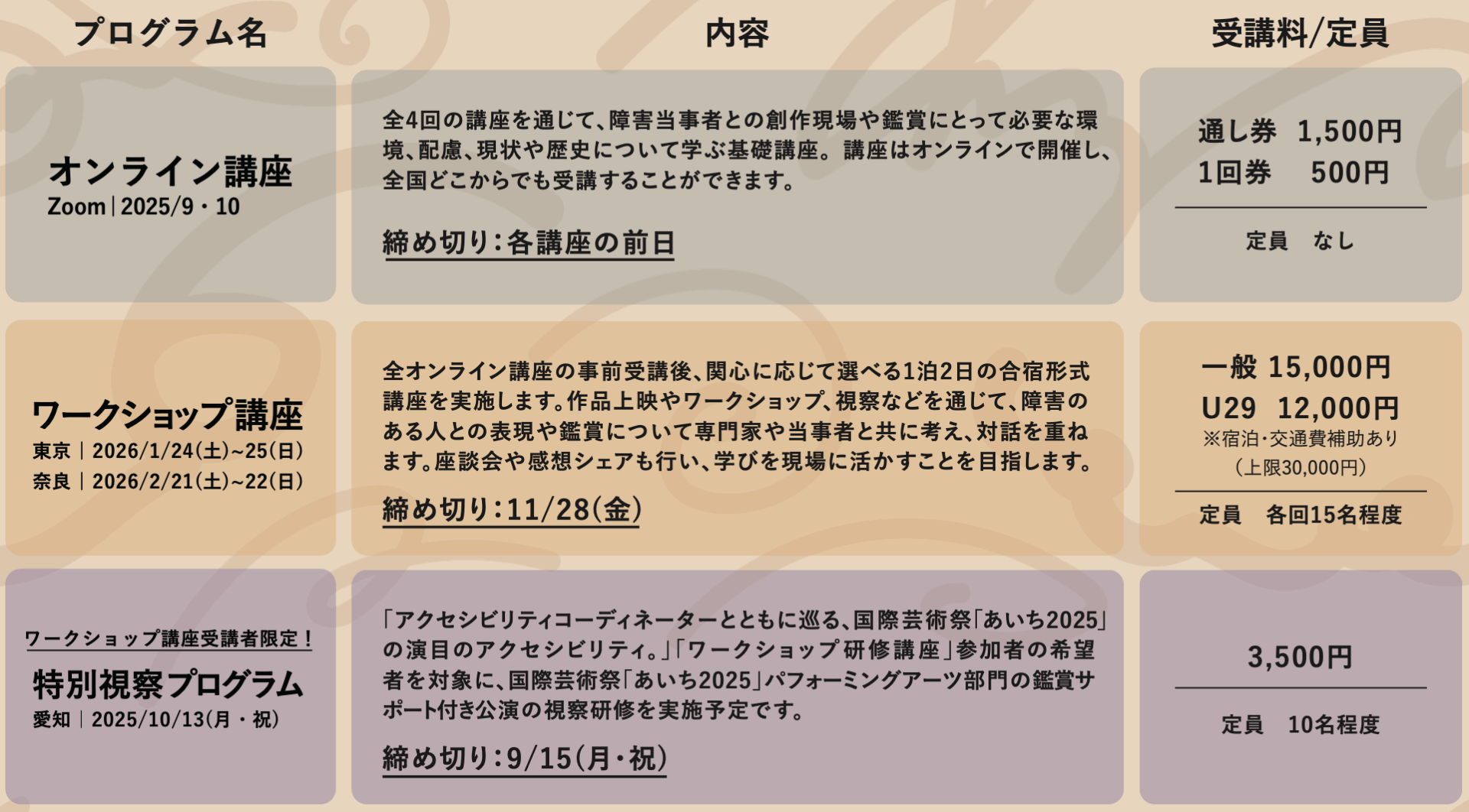 受講料:3,500円 ※「ワークショップ講座」参加希望者のみが参加可能です。